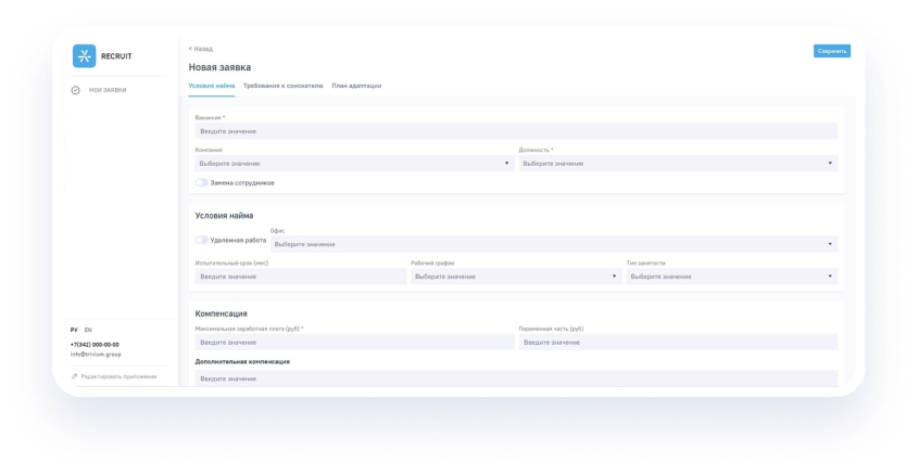 Automation of the recruitment process, document preparation, leave management, working time control, etc.