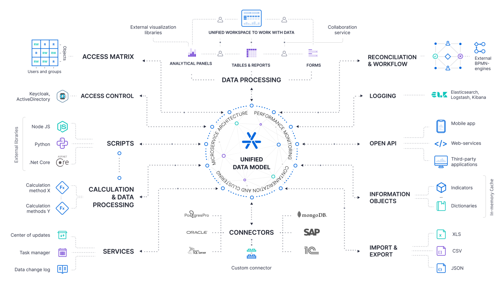 Control of access rights up to a cell level. Integration with corporate directories (AD, LDAP)